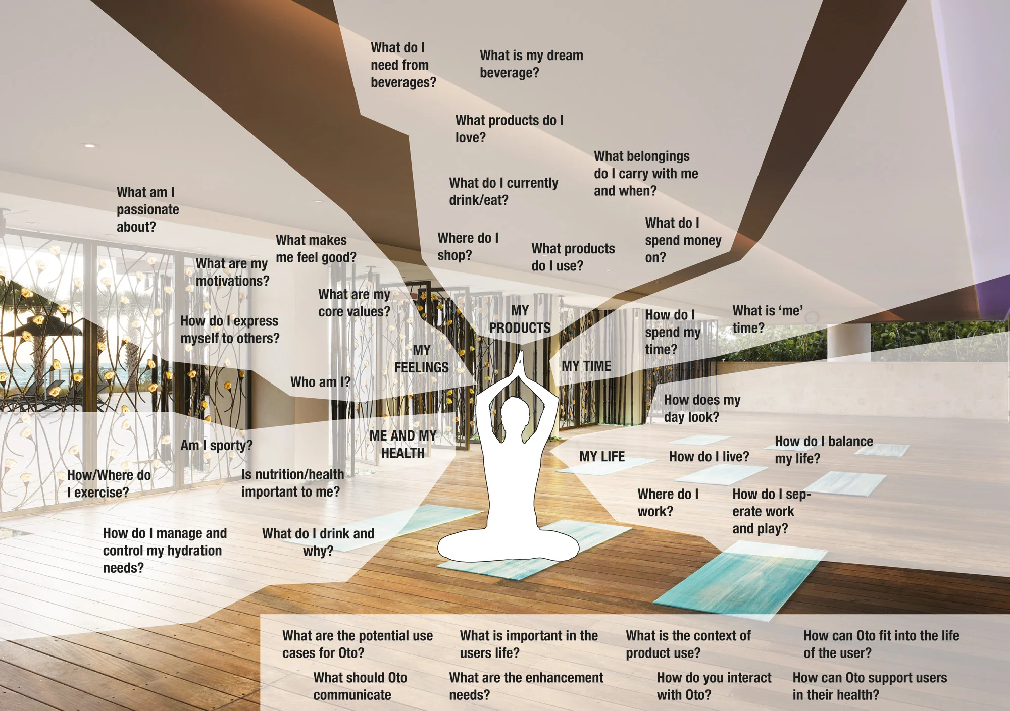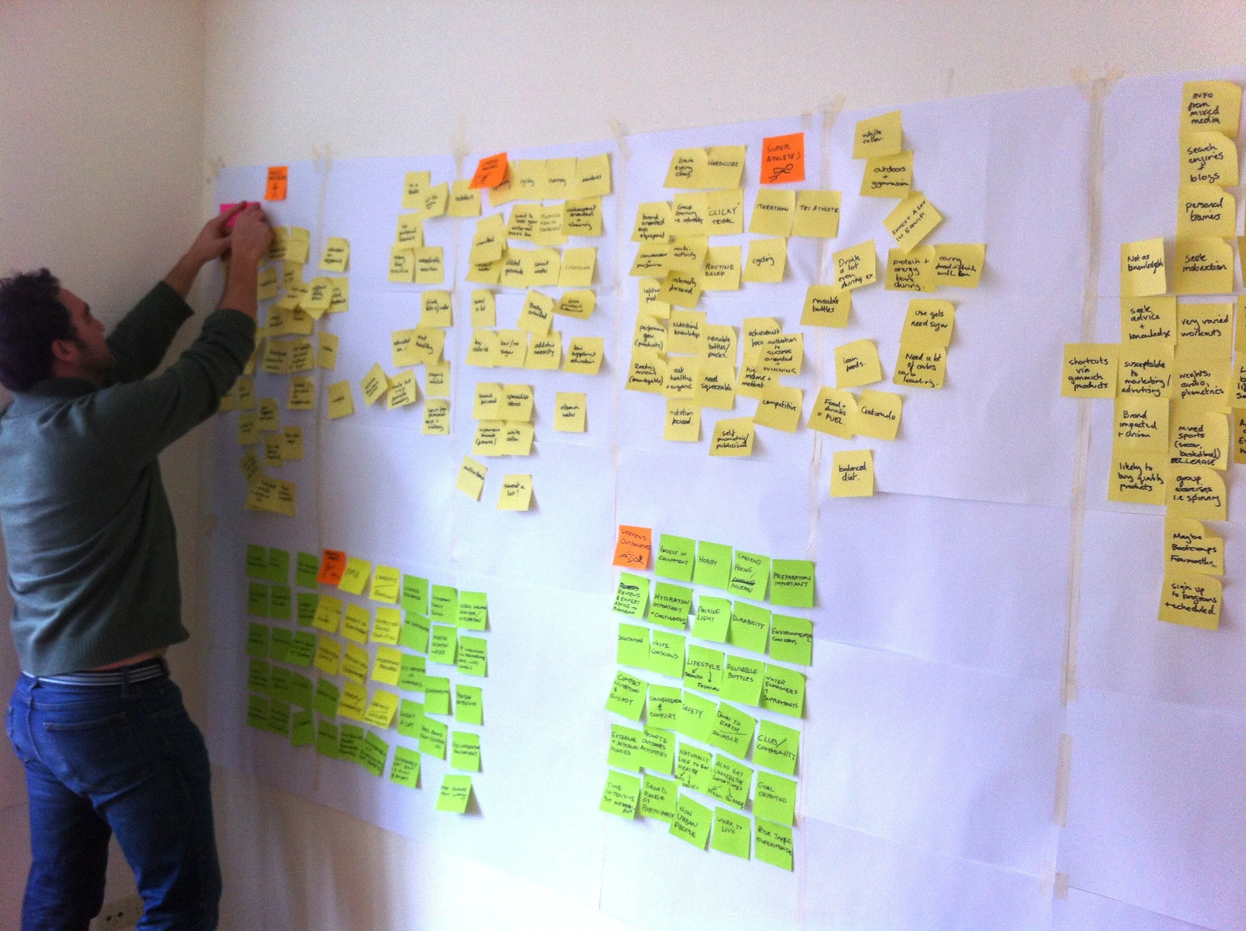 To get deeper insight into this group we conducted a 2-month study between New York City, Boston and Delft (the Netherlands) interviewing various health and fitness conscious people, instructors, yoga enthusiasts and health-related influencers. We also took part in fitness bootcamps and yoga activities observing how people behaved and gaining first hand experience about their needs and beverage and supplement products they consumed. Following these activities using affinity mapping we synthesized our findings into three personas, around which we chose the “Yoga Practitioner” as our primary design target - reason being they were the most influential and were receptive to our environmental mission as a company.